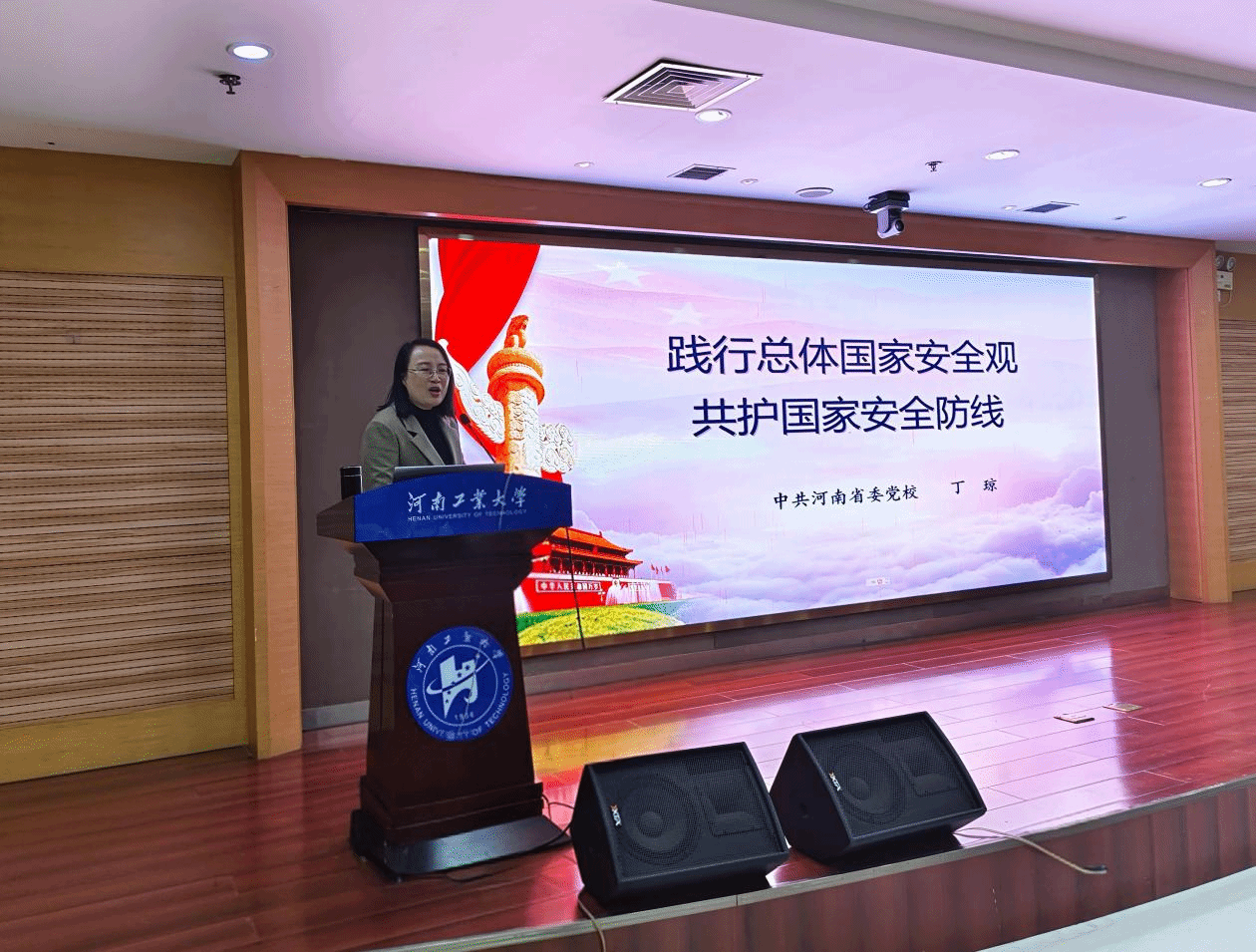 丁琼副教授是中共河南省委党校公共管理教研部博士,中国应急管理学会会员,河南省委国安委专家,河南省应急管理厅应急管理专家,在国家安全领域有深入研究。讲座中,她以《践行总体国家安全观 共护国家安全防线》为主题,从“总体国家安全观与国家安全”“国家安全与大学生”“青春力量守护国家安全”三个方面,深刻分析了当前严峻的国家安全形势,阐释了总体国家安全观的重要意义、主要内涵和实践路径,并就师生如何在实际学习、工作和生活中维护国家安全,提出了具有指导性的意见和建议。她总结了当前青年群体易受影响的“六大效应”,提出了应对风险的“三步法”,并结合典型案例,提醒师生要高度关注信息安全,规范使用社交平台,审慎发布网络信息,注意防范实习就业、出国交流及学术合作中可能出现的涉外安全风险。