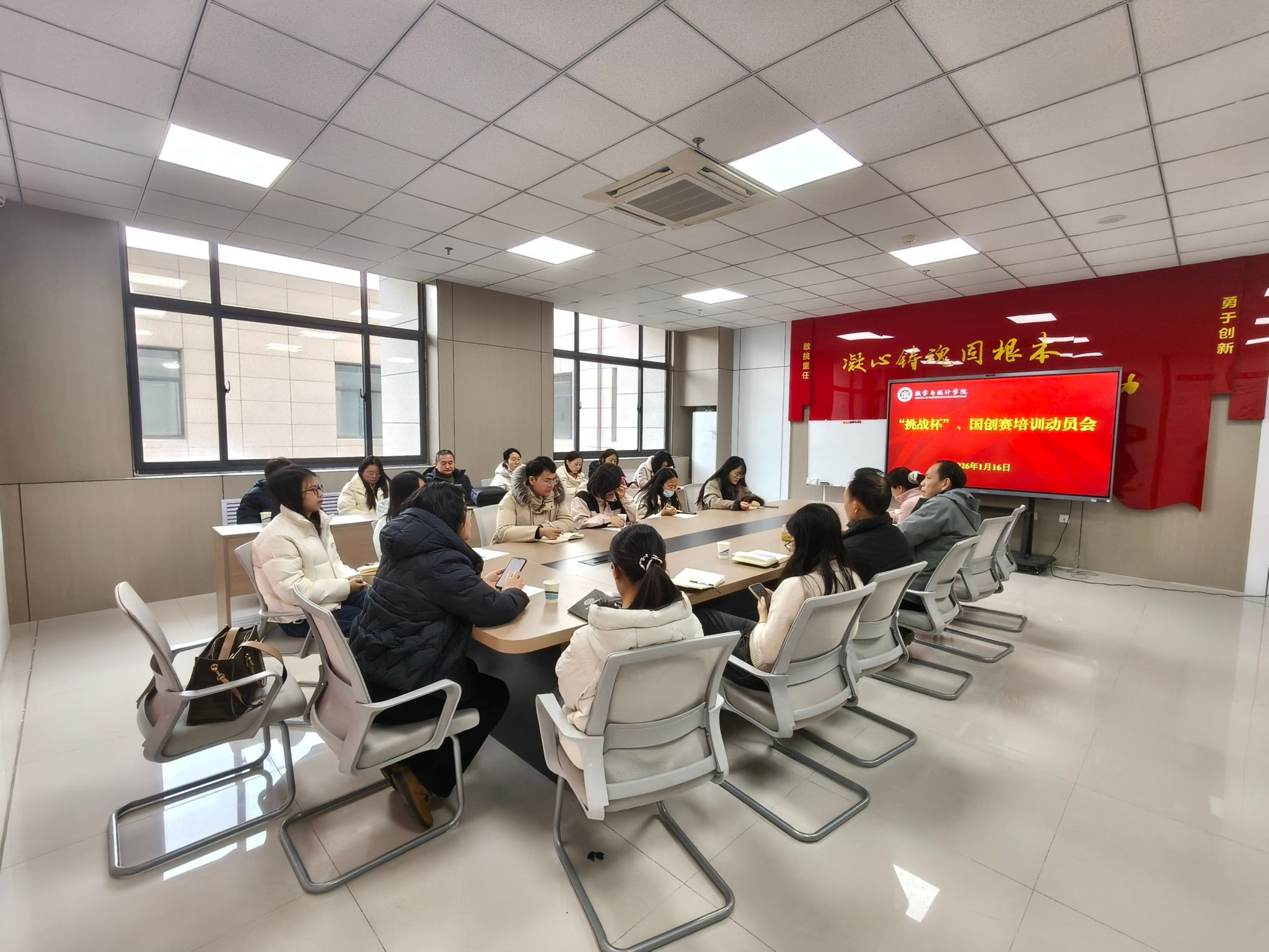 创新创业工作的老师致以感谢,并围绕以赛育人、协同备战提出要求与希望。他强调,一是希望全体参会教师提高重视,将赛事指导作为落实立德树人、强化实践教学的重要抓手,充分发挥统计学科专业优势,精准对接学生需求开展指导;二是鼓励统计教研室老师做好传帮带,带动新进博士老师快速熟悉赛事流程、掌握指导技巧,凝聚起全院学科师资的指导合力;三是要求老师们立足学科前沿,挖掘具有应用价值与学科亮点的项目选题,引导学生将专业知识转化为创新成果,展现现金网