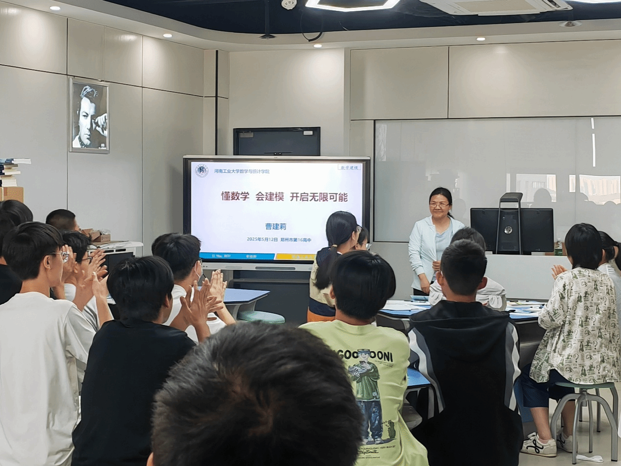 在专题讲座环节,曹建莉以深入浅出的方式讲解了数学建模的理论与实践。她从数学建模竞赛的组织形式切入,系统阐述了数学建模的基本概念、方法体系及其在工程优化、生物医学等领域的实际应用。活动现场气氛活跃,互动环节师生交流深入。曹建莉对同学们提出的问题给予了专业细致的解答。整场活动受到郑州市第十六高级中学师生的高度认可。
