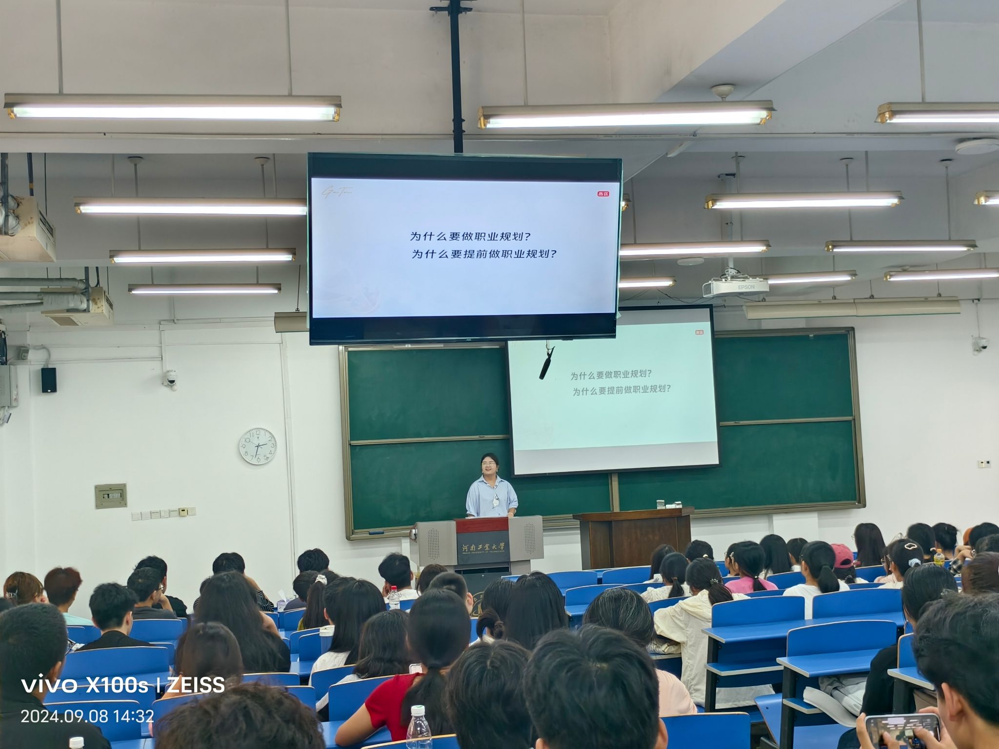 在4121教室举办大学生职业生涯规划讲座。本次讲座邀请了高途集团中原总部校园招聘负责人陈璇为全体新生进行职业规划指导。