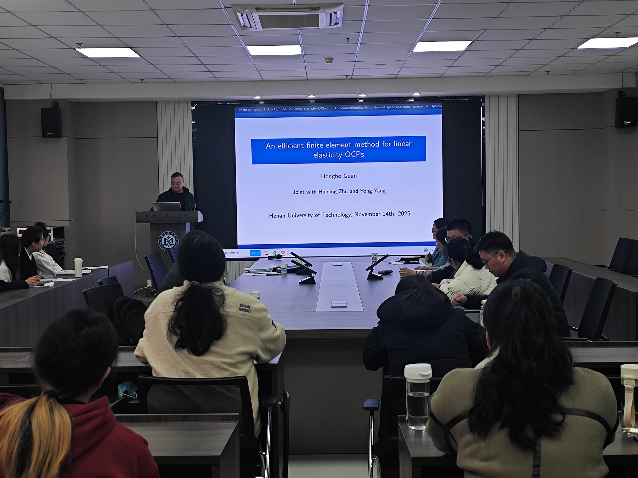 关宏波教授在莲花街校区惟德楼315会议室作了题为“An efficient finite element method for linear elasticity OCPs”的学术报告。现金网